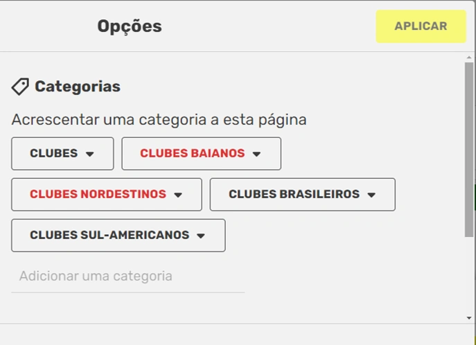 Também é possível apenas acrescer as categorias na aba respectiva que se localiza na parte inferior de cada artigo sem mesmo abrir o menu de edição, porém esse método não permite excluí-las ou modificá-las por outros meios.